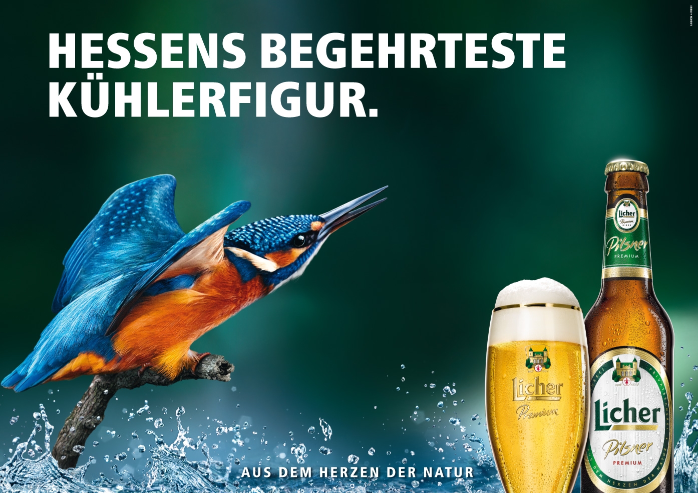 Für das beliebteste Bier Hessens einen frischen Markenauftritt gebraut. Entwicklung der Werbekampagne mit dem reanimierten Eisvogel als Keyvisual in der bestehenden Markenpositionierung.